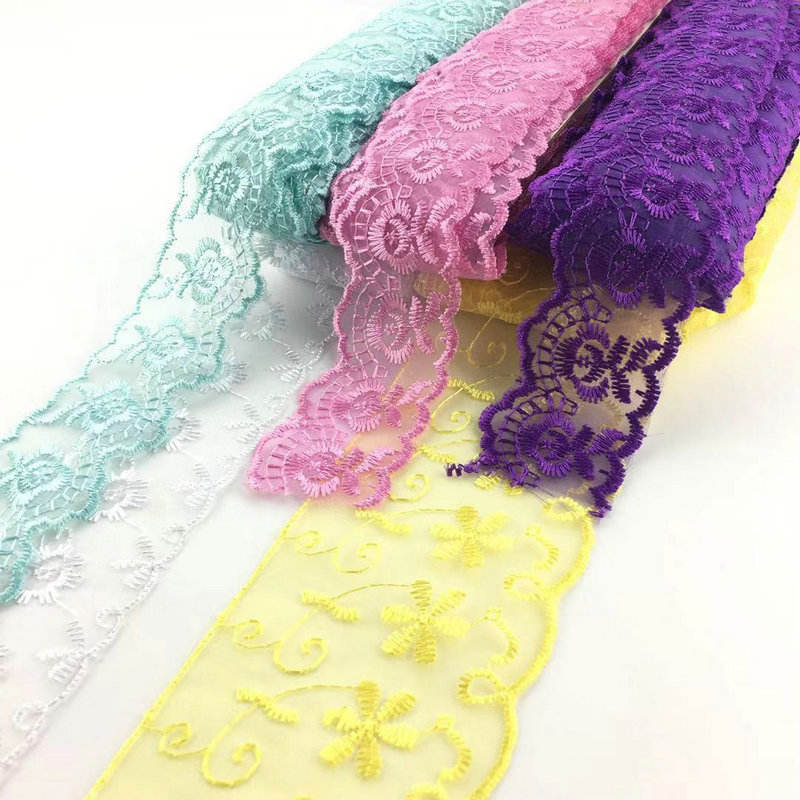नवीनतम डिझाइन मल्टी कलर्स ऑर्गन्झा लेस ट्रिम भरतकाम ऑर्गन्झा लेस होलसेल