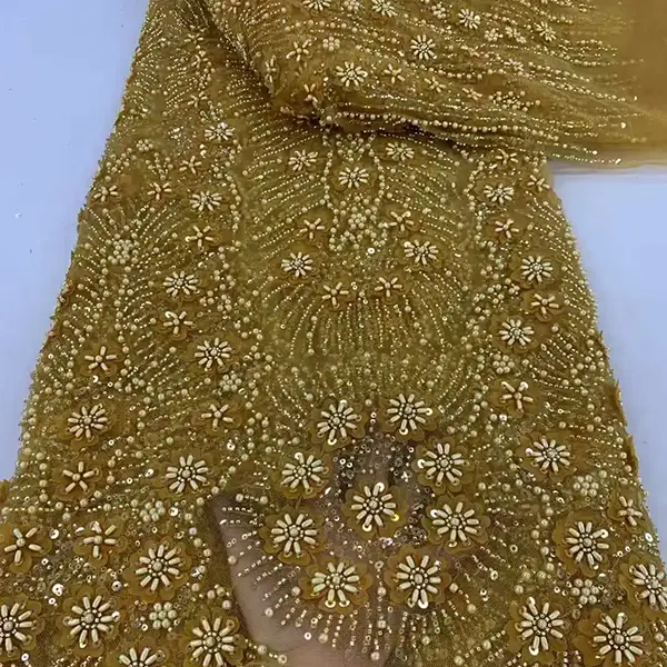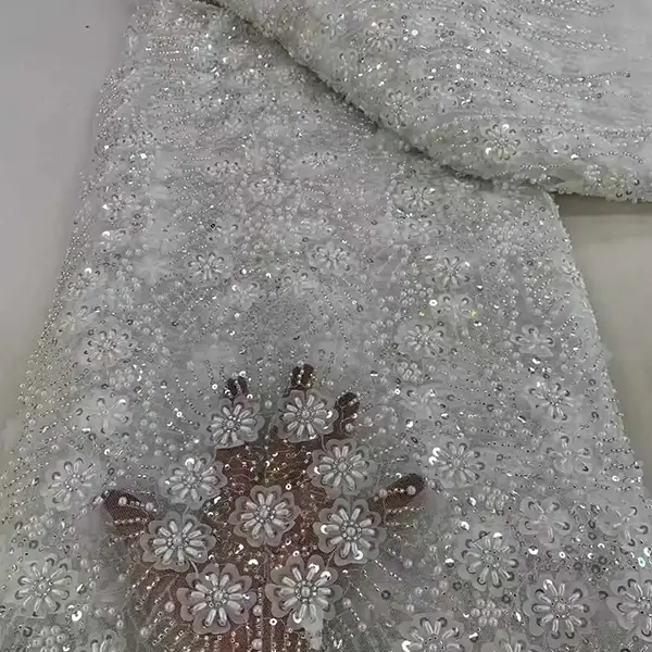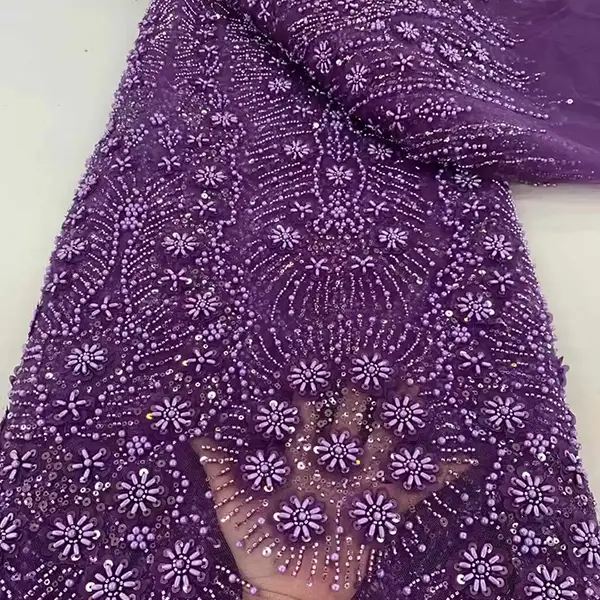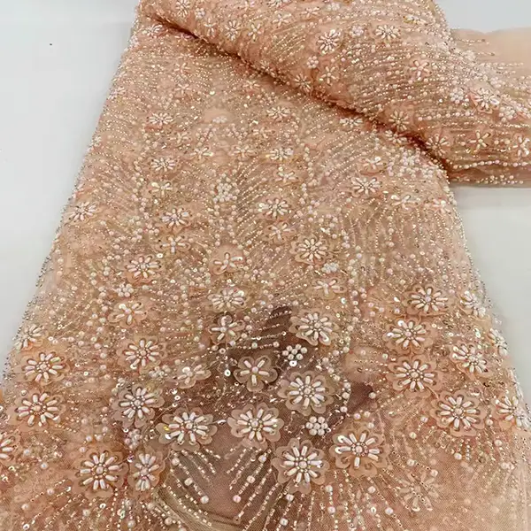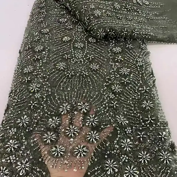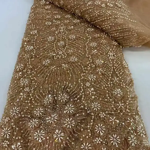 लक्झरी हेवी मेड एम्ब्रॉयडरी ट्यूल मणी लेस मेष बीड फॅब्रिक ज्यात गुंतागुंतीचे मणी आणि नाजूक लेस आहे. उच्च-घनतेचे स्टिचिंग आणि हाताने-लागू मणी विलासी पोत तयार करतात, ब्राइडल गाऊन, संध्याकाळी पोशाख आणि हौट कॉचरसाठी योग्य. मोहक, तेजस्वी आणि प्रीमियम गुणवत्ता.
