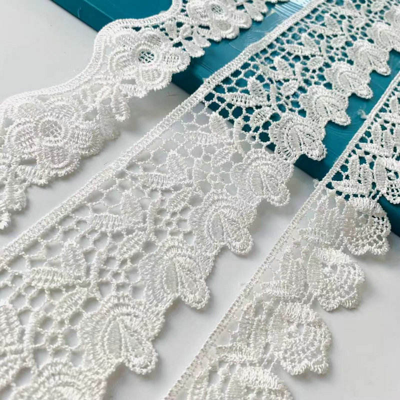 फ्लॉवर लेस ट्रिम 100% पॉलिस्टर केमिकल लेस उत्कृष्ट फुलांचा नमुना रासायनिक पोकळ-आउट तंत्र पोत हलके, मऊ आणि श्वास घेण्यायोग्य बनवते. हे कपडे, होम टेक्सटाईल, वेडिंग ड्रेस इत्यादी सजावटसाठी योग्य आहे, निवडण्यासाठी विविध रंग आणि रुंदी ऑफर करतात. हे धुण्यायोग्य आणि टिकाऊ आहे आणि सानुकूलित डिझाइनचे समर्थन करते.