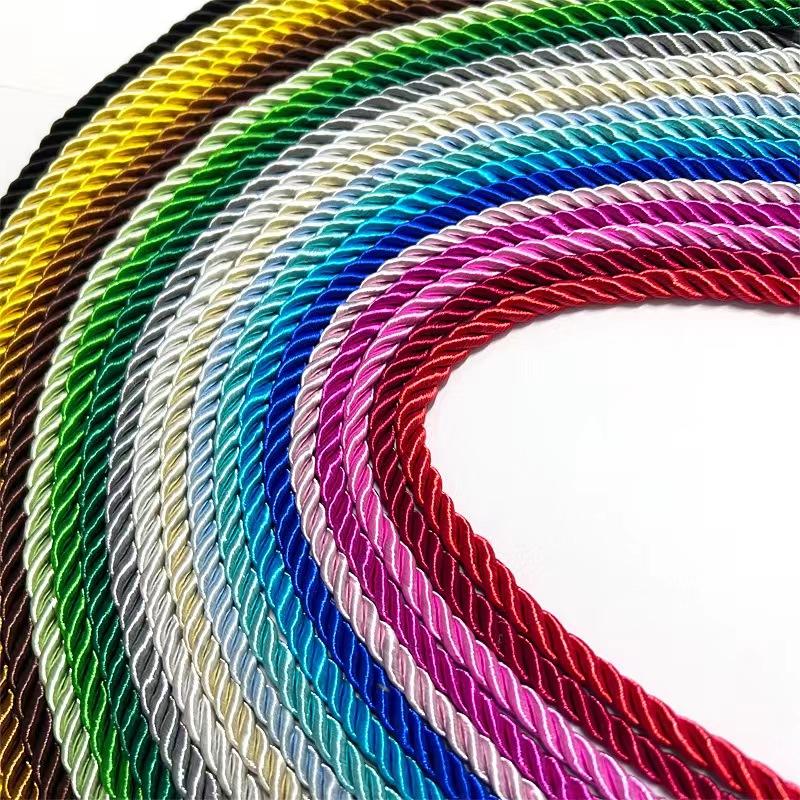सॉलिड कलर 7 मिमी स्ट्रँड रंगीत रेशीम दोरी सजावट रेशीम दोरी