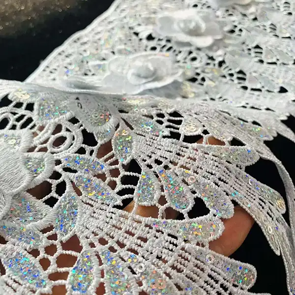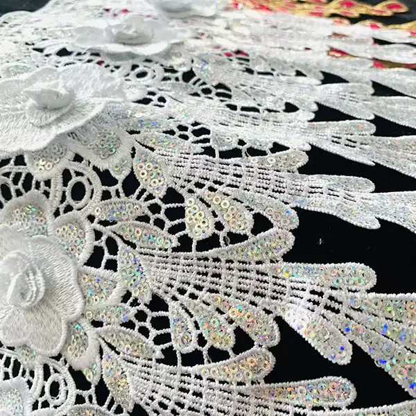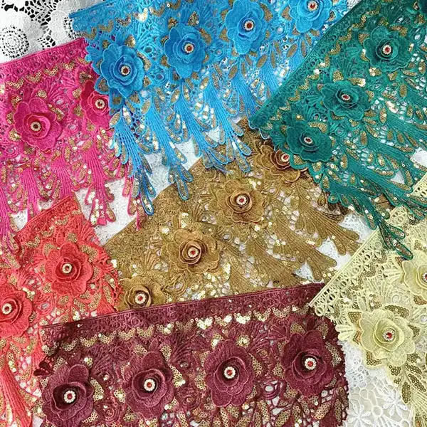 Wholesale 25cm Embroidery Polyester Trim AB Sequins Lace with 3D Rose Flower for Clothing